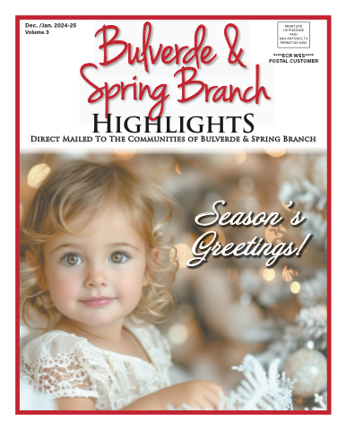 Dec. /Jan. 2024-25 Volume 3****ECR WSS**** POSTAL CUSTOMERHighlightSDirect Mailed To The Communities of Bulverde & Spring BranchSeason’s Greetings!PRSRT STD US POSTAGE PAIDSAN ANTONIO, TX PERMIT NO 6450Dec. / Jan 2024-25 www.bsbhighlights.com 1