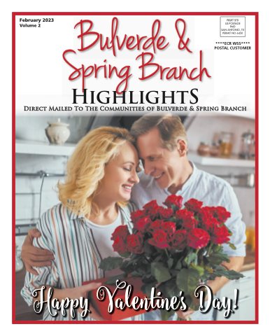 February 2023 Volume 2****ECR WSS**** POSTAL CUSTOMERHighlightSDirect Mailed To The Communities of Bulverde & Spring BranchPRSRT STDUS POSTAGE PAIDSAN ANTONIO, TX PERMIT NO 6450Happy Valentine's Day!February 2023 www.bsbhighlights.com 1