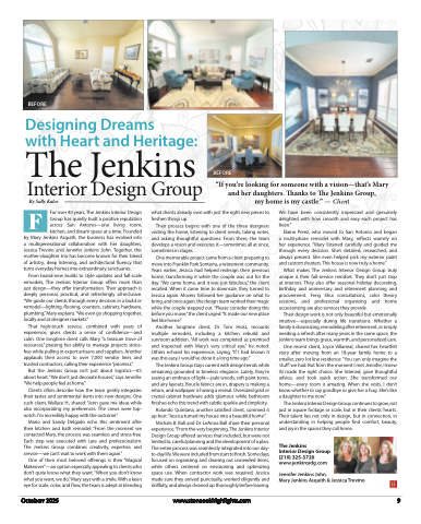 BEFOREDesigning Dreamswith Heart and Heritage:The Jenkins Interior Design GroupBEFOREBy Sally KalosF For over 40 years, The Jenkins Interior Design Group has quietly built a positive reputation across San Antonio—one living room, kitchen, and dream space at a time. Foundedby Mary Jenkins Asquith, the business has evolved into a multigenerational collaboration with her daughters, Jessica Trevino and Jennifer Jenkins John. Together, this mother-daughter trio has become known for their blend of artistry, deep listening, and architectural fluency that turns everyday homes into extraordinary sanctuaries.From brand-new builds to style updates and full-scale remodels, The Jenkins Interior Group offers more than just design—they offer transformation. Their approach is deeply personal, practical, and refreshingly all-inclusive. “We guide our clients through every decision in a build or remodel—lighting, flooring, counters, cabinets, hardware, plumbing,”Mary explains.“We even go shopping together, locally and at designer markets.”That high-touch service, combined with years of experience, gives clients a sense of confidence—and calm. One longtime client calls Mary “a treasure trove of resources,” praising her ability to manage projects stress- free while pulling in expert artisans and suppliers. Another applauds their access to over 7,000 vendor lines and trusted contractors, calling their experience “priceless.”But the Jenkins Group isn’t just about logistics—it’s about heart. “We don’t just decorate houses,” says Jennifer. “We help people feel at home.”Clients often describe how the team gently integrates their tastes and sentimental items into new designs. One such client, Wallace H., shared: “Jenn gave me ideas while also incorporating my preferences. The crews were top- notch. I’m incredibly happy with the outcome.”Mario and Sandy Delgado echo this sentiment after their kitchen and bath remodel: “From the moment we contacted Mary, the process was seamless and stress-free. Each step was executed with care and professionalism. The Jenkins Group combines creativity, expertise, and service—we can’t wait to work with them again.”One of their most beloved offerings is their “Magical Makeover”—an option especially appealing to clients who don’t quite know what they want. “When you don’t know what you want, we do,” Mary says with a smile. With a keen eye for scale, color, and flow, the team is adept at blending“If you’re looking for someone with a vision—that’s Mary and her daughters. Thanks to The Jenkins Group,my home is my castle.” — ClientOctoberr 2025www.stoneoakhighlights.com9what clients already own with just the right new pieces to freshen things up.Their process begins with one of the three designers visiting the home, listening to client needs, taking notes, and asking thoughtful questions. From there, the team develops a vision and executes it—sometimes all at once, sometimes in stages.One memorable project came from a client preparing to move into Franklin Park Sonterra, a retirement community. Years earlier, Jessica had helped redesign their previous home, transforming it while the couple was out for the day. “We came home, and it was just fabulous,” the client recalled. When it came time to downsize, they turned to Jessica again. Movers followed her guidance on what to bring, and once again, the design team worked their magic while the couple stepped out. “Please consider doing this before you move,” the client urged. “It made our new place feel like home.”Another longtime client, Dr. Tom Hicks, recounts multiple remodels, including a kitchen rebuild and sunroom addition. “All work was completed as promised and inspected with Mary’s very critical eye,” he noted. Others echoed his experience, saying, “If I had known it was this easy, I would’ve done it a long time ago.”The Jenkins Group stays current with design trends while remaining grounded in timeless elegance. Lately, they’re seeing an embrace of light—pale woods, soft paint tones, and airy layouts. Boucle fabrics are in, drapery is making a return, and wallpaper is having a revival. Oversized gold or crystal cabinet hardware adds glamour, while bathroom finishes echo this trend with subtle sparkle and simplicity.Rolando Quintana, another satisfied client, summed it up best: “Jessica turned my house into a beautiful home.”Michale B. Ball and Dr. LeAnna Ball share their personal experience. “From the very beginning, The Jenkins Interior Design Group offered services that included, but were not limited to, careful planning and the development of a plan. The entire process was seamlessly integrated into our day- to-day life. We were included from start to finish. Some days focused on organizing and clearing out unneeded items, while others centered on envisioning and optimizing space use. When contractor work was required, Jessica made sure they arrived punctually, worked diligently and skillfully, and always cleaned up thoroughly before leaving.We have been consistently impressed and genuinely delighted with how smooth and easy each project has been.”Elaine Perez, who moved to San Antonio and began a multi-phase remodel with Mary, reflects warmly on her experience. “Mary listened carefully and guided me through every decision. She’s detailed, researched, and always present. She even helped pick my exterior paint and custom shutters. This house is now truly a home.”What makes The Jenkins Interior Design Group truly unique is their full-service mindset. They don’t just stop at interiors. They also offer seasonal holiday decorating, birthday and anniversary and retirement planning and procurement. Feng Shui consultations, color theory sessions, and professional organizing and home accessorizing are also services they provide.Their design work is not only beautiful but emotionally intuitive—especially during life