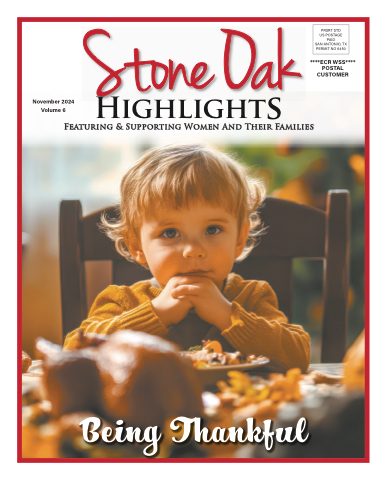 ****ECR WSS**** POSTAL CUSTOMERHighlightsFeaturing & Supporting Women And Their FamiliesNovember 2024 Volume 6PRSRT STD US POSTAGE PAIDSAN ANTONIO, TX PERMIT NO 6450Being ThankfulNovember 2024 www.stoneoakhighlights.com 1
